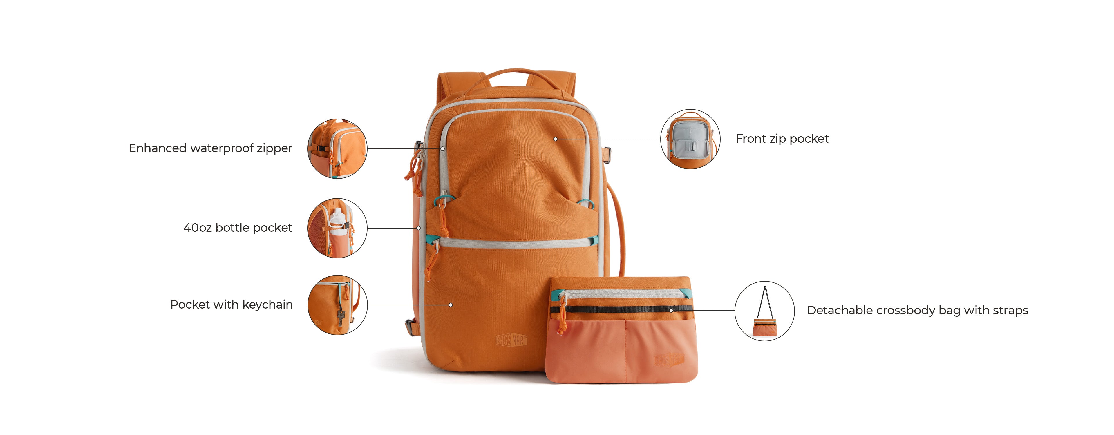 - Detachable Crossbody Bag: 9.3'' X 6.7'' / 23.5 x 17cm