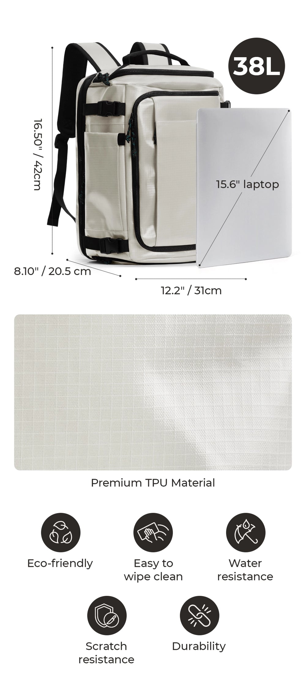 • Laptop Compartment: Fits a 15.6-inch laptop in the main pocket, and a smaller pocket for items like iPad, Kindle, or Nintendo Switch.