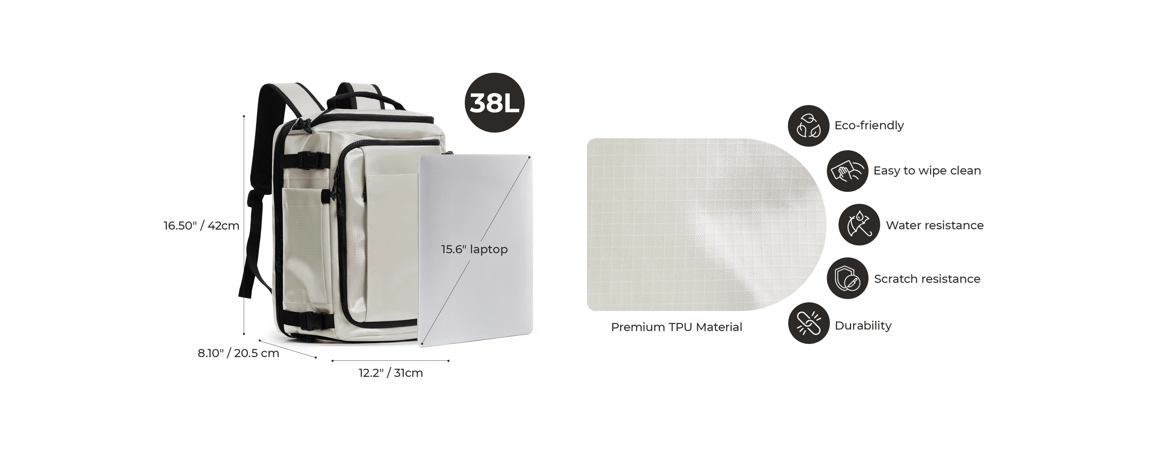 • 15.6" laptop compartment