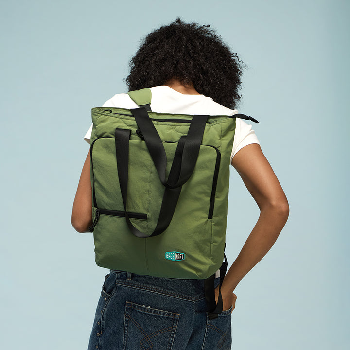 The tote-to-backpack design perfectly balances form, function, and flexibility. With hidden straps and a laptop sleeve, this lightweight bag is doing the most.