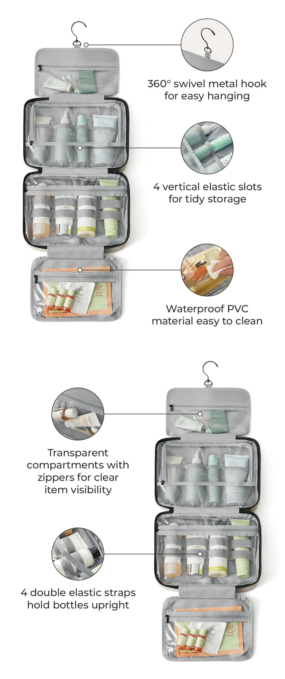 - Capacity: Suitable for packing whole family's toiletries.